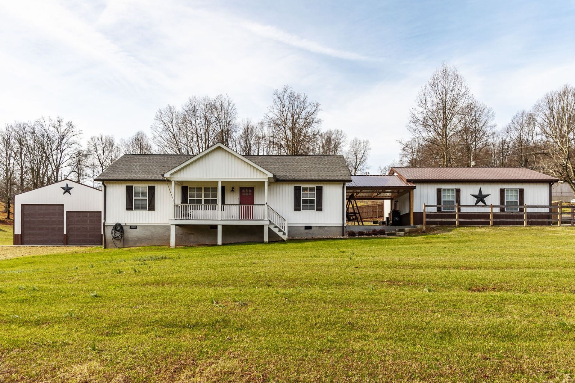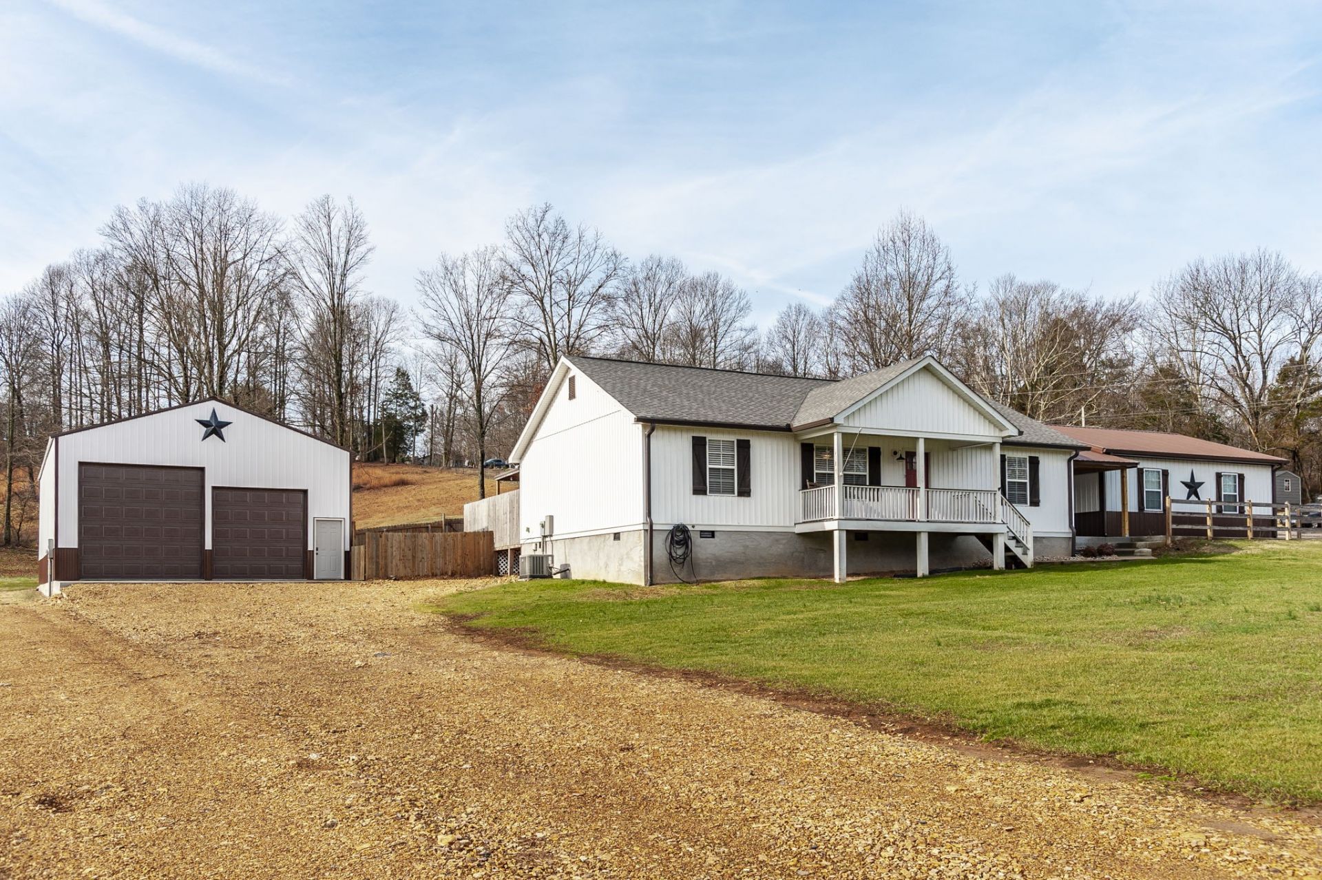 This beautifully maintained 3-bedroom, 2-bath property is ideally located between Gallatin, Portland, and Lafayette-offering a perfect balance of convenience and peaceful country living.Designed with space and versatility in mind, this property is ideal for those needing room to spread out. It features a 30x30 insulated detached garage as well as a remarkable 30x50 second garage with 14-foot walls, perfectly suited for RV storage, dump trucks, boats, or a fully equipped workshop. A spring-fed pond adds a peaceful natural touch, while the saltwater pool, outdoor entertaining deck, and bar create an exceptional space for hosting and relaxing.Inside, you'll find thoughtful upgrades throughout, including granite countertops, stainless steel appliances, vaulted ceilings, and a spacious laundry room with utility sink. The split-bedroom floor plan enhances privacy and offers a functional layout for everyday living.With its impressive amenities, flexible use options, and inviting outdoor spaces, this property delivers a rare combination of comfort and capability. Schedule your private showing today!