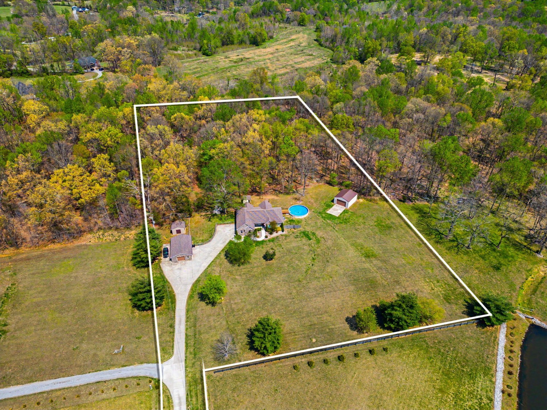 Private 6.29 Acre Retreat w/ 24x30 Shop, Detached 3 Car Garage w/Office or Guest Space, 16x16 Storage Shed, 30' Pool & Wooded Trails - Endless Possibilities!Welcome to your own private retreat on over 6 beautiful acres in Portland, TN! This well-maintained custom home offers the perfect blend of comfort, functionality, and space-both inside and out.Nestled well off the road for ultimate privacy, this property features a 2,060 square feet Main Home with 3 bedrooms, 2.5 bathrooms, Office, Formal Dining room, and spacious Livingroom and Kitchen with a breakfast nook that overlooks the gorgeous back yard. The home has been meticulously cared for and offers a solid foundation for a new owner to make it their own.Step outside and enjoy everything this property has to offer-from the expansive back deck that spans the length of the home, to the 30' above-ground pool with a brand-new liner and a hot tub that's perfect for relaxing evenings under the stars. The yard has tons of space for play or pets and there's even a fenced in portion ready for small children.The land itself is truly special, with approximately 3 acres manicured and maintained, and an additional 3+ acres of wooded trails ideal for riding, exploring, or simply enjoying nature.For those needing space for hobbies, work, or storage, this property delivers in a big way. In addition to the attached 2-car garage, you'll find a detached 3-car garage complete with heated and cooled office space and a full bathroom-perfect for a home business, guest space, or workshop. There's also a 24x30 shop with a concrete floor and a 16x16 storage shed, giving you endless flexibility for equipment, tools, or recreational use.A concrete driveway, peaceful setting, and versatile features make this property a rare find in today's market. Whether you're looking for a private homestead, a place to run your business, or simply room to spread out and enjoy the outdoors-this one checks all the boxes.