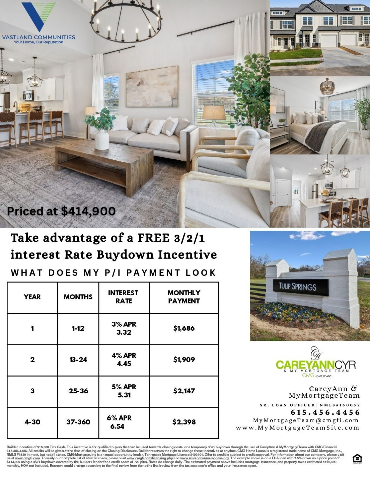 MOVE-IN Ready Homes Available. Tulip Springs is a new construction townhome community in Hermitage, TN. These stylish townhomes offer 3 bedrooms, 2.5 bathrooms, and 1,632 square feet of thoughtfully designed living space. Each home features a one-car garage and a spacious Primary Suite with a walk-in closet on the main level. The open-concept design flows beautifully into an incredible gourmet kitchen complete with extensive cabinet storage, a large island or peninsula, and a walk-in pantry.Additional highlights include a versatile flex space perfect for a home office, playroom, or guest area, extra walk-in storage, and a private patio. Best of all, these homes back up to a beautiful tree-lined preserve, providing enhanced privacy and peaceful natural views.This exclusive new construction townhome community is conveniently located just minutes from Nashville International Airport and a short drive to the heart of Music City. Residents enjoy easy access to major interstates, along with nearby restaurants, entertainment venues, and premier shopping destinations.Come experience vibrant & carefree living at these STUNNING homes designed by Vastland Communities! Walnut floor plan. MODEL HOME OPEN Wed-Sat 10am-5pm, Sun 1pm-5pm and Mon-Tues by appointment only. Contact: Vastland Communities Christy Frewin (c) 615-943-3781(o) 615-678-4480info@vastlandcommunities.com