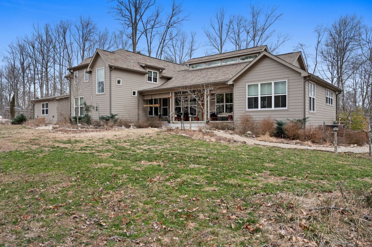 Gorgeous custom Perch Plan modern farmhouse on 5 private acres at the end of a quiet dead-end road in the picturesque farmland of Williamson County. Perched atop a serene ridge and surrounded by forest and native prairie, the grounds are thoughtfully landscaped with native trees, grasses, and wildflowers, creating a setting that feels both intentional and effortlessly natural.Inside, a bright, open kitchen with hickory cabinetry flows into the dining and living areas, ideal for gathering and entertaining. The primary suite features corner windows, a spa-style bath with soaking tub and separate shower, and a walk-in closet with custom built-ins. A guest bedroom with its own bath is also on the main level. Upstairs, there are two spacious bedrooms, a shared bath, and a comfortable common area. Large windows throughout and an architecturally distinctive clerestory fill the main living and dining spaces with natural light. White oak hardwood floors run throughout the main level, with carpet in the upstairs bedrooms. A dedicated office includes custom wood shelving and a built-in desk, plus a downstairs gathering room ideal for an additional office, school, or reading space.Outdoor living is exceptional with a wide front porch, a screened back porch, and two side decks for grilling or a hot tub. Enjoy total privacy, with sunrise views from the back and sunsets out front.The property includes a fenced garden with raised beds, a greenhouse, a grape arbor, an herb garden, fruit trees, and berry bushes. A wooden barn with attached workshop provides extra parking and storage, plus an RV hookup. A whimsical treehouse and firepit complete the retreat. Trails (wide enough for a UTV) lead to a year-round spring-fed creek, where a newer deck overlooks the water. Well water with whole-house filtration. A true nature lover's paradise and a must-see.